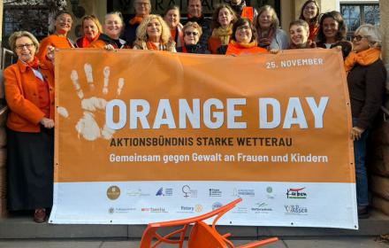 Wer nicht selbst laufen möchte, kann eine Läuferin oder einen Läufer sponsern oder die Teilnehmenden vor Ort anfeuern. Orangene Kleidung und Lichter sind ausdrücklich erwünscht – sie stehen symbolisch für den Kampf gegen Gewalt. Auf der Grünfläche rund um die Strecke informieren lokale Fachberatungsstellen und Initiativen über ihre Arbeit, es gibt kurze Fachvorträge, Essen und Getränke sowie ein musikalisches Rahmenprogramm mit der Wetterauer Musikerin Rima Savazian. Eine Anmeldung vorab ist erwünscht. Teilnehmende können dabei ihre Sponsorinnen und Sponsoren benennen, die für jede gelaufene Runde einen frei wählbaren Betrag spenden. Weitere Informationen und Anmeldung unter www.wetteraukreis.de/frauenseiten/themen/schutz-vor-gewalt. Spenden werden auch vorab gerne entgegen genommen an die folgende Bankverbindung: IBAN DE86 5066 1639 0007 2117 32, Stichwort: „orange day“.Hinweis zur Teilnahme: Da die Veranstaltung thematisch Gewalt behandelt, sollten Kinder und Jugendliche unter 16 Jahren nur in Begleitung einer Bezugsperson teilnehmen.